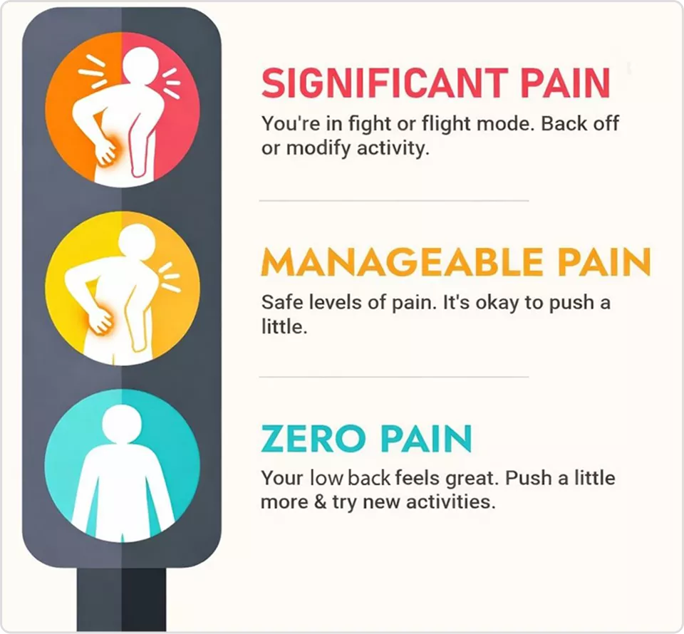 Dr. Kirakosyan teaches his clients a pain traffic light to help them throughout the program for monitoring symptoms and when to push it more in the gym and establish new baselines.